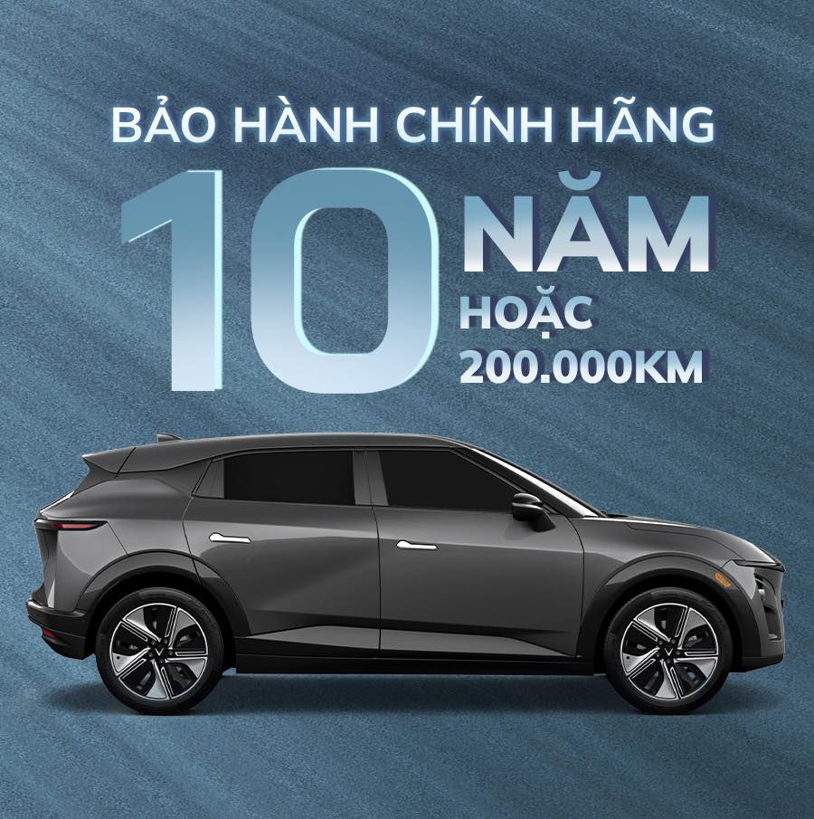 - Bảo hành chính hãng 10 năm hoặc 200.000 km (tùy điều kiện nào đến trước), khách hàng mua pin được bảo hành 10 năm, không giới hạn số km.